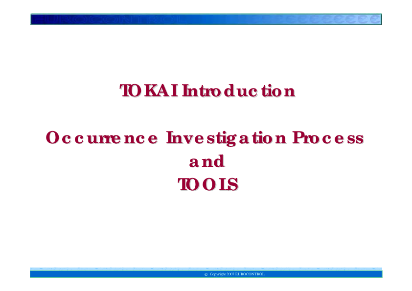 TOKAI Introduction - Occurrence Investigation Process and TOOLS
