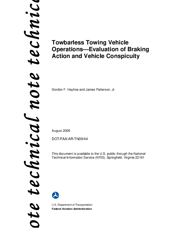 Towbarless Towing Vehicle Operations Evaluation of Braking Action and Vehicle Conspicuity