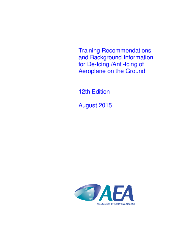 Training Recommendations and Background Information for De-Icing/Anti-Icing of Aeroplanes on the Gro