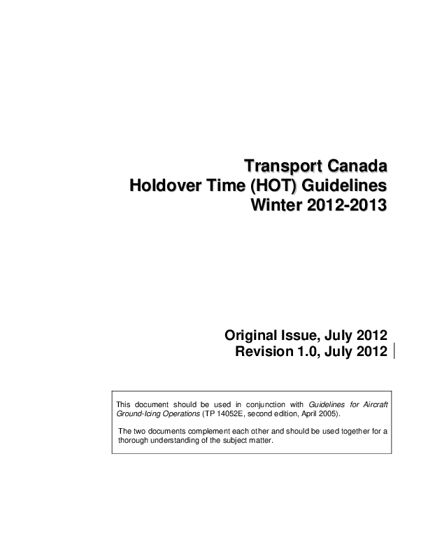 Transport Canada Holdover Time (HOT) Guidelines Winter 2012-2013