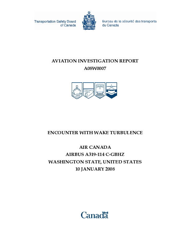 TSB - Aviation Investigation Report A08W0007, A319 / B744 wake turbulence encounter, Oroville USA, 1