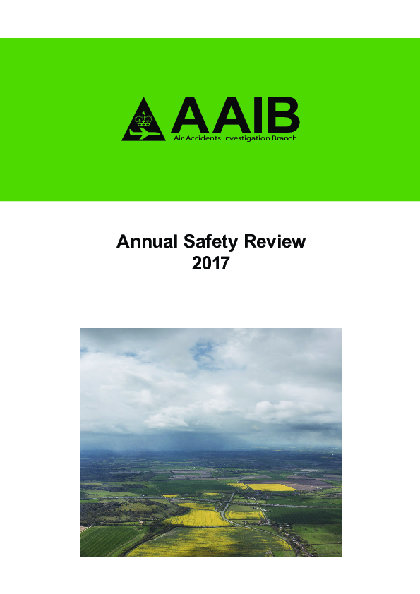 The review summarizes the 2017 work done by the AIBB. It contains statistics, safety recommendations, safety action and analysis on the 2017 accidents and incidents investigated by the AAIB.