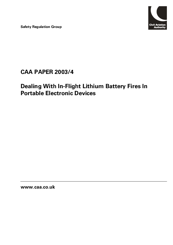 UKCAA - Paper 2003/04 Dealing With In-Flight Lithium Baterry Fires in Portable Electronic Devices