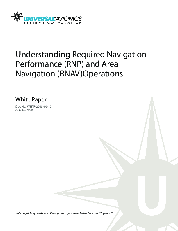 Doc No.: WHTP-2013-16-10. This document clarifies the current Required Navigation Performance (RNP) and Area Navigation (RNAV) requirements in the United States, Europe, and other parts of the world. It also discusses how Universal Avionics Flight Management System (FMS) product line supports approved RNP operations.