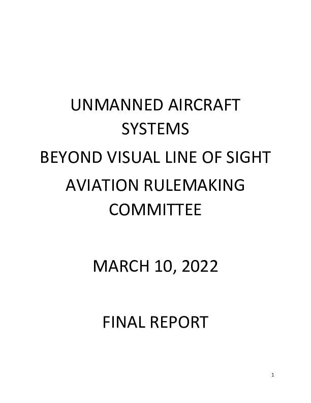 Unmanned Aircraft Systems Beyond Visual Line of Sight Aviation Rulemaking Committee Final Report