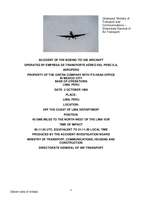 Unofficial Translation: Final Report B752 accident, Lima, Peru, 2 October 1996