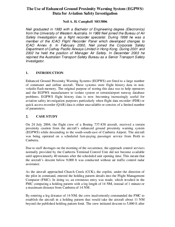The Use of EGPWS Data for Aviation Safety Investigation