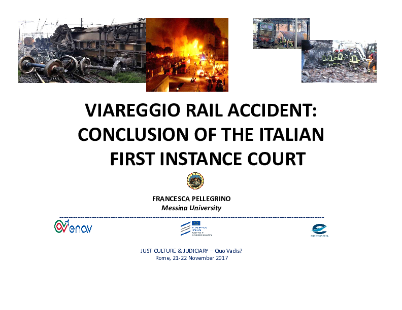 This presentation comprises the judicial point of view of the Italian First Instance Court regarding the worst rail accident in Italy in over 30 years, the Viareggio Rail Accident.