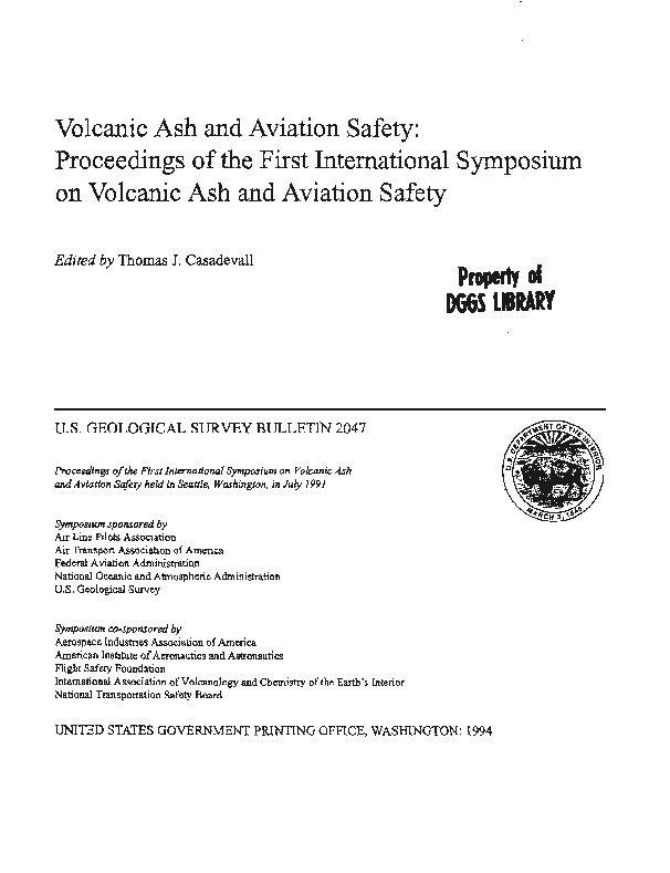 Volcanic Ash and Aviation Safety: Proceedings of the First International Symposium on Volcanic Ash and Aviation Safety, published by the US Geological Survey as Bulletin 2047 and Edited by Thomas J. Casadevall