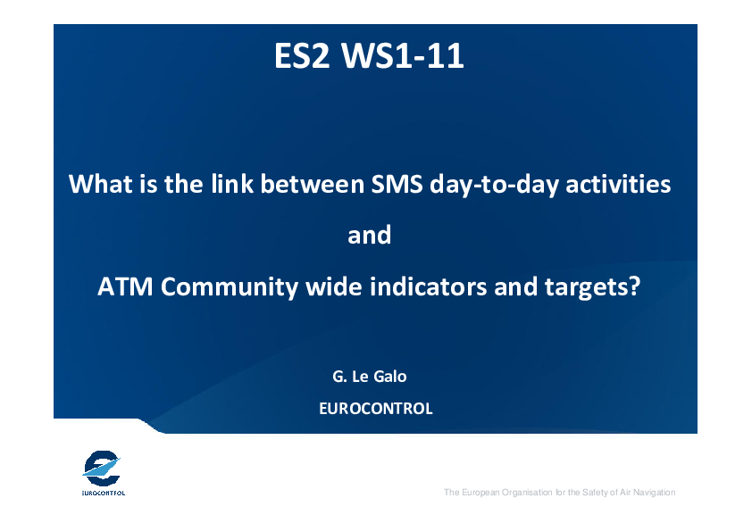 This presentation is concentrated about the relationship between local day-to-day indicators and targets and ATM community indicators and targets, which works well if the quality of the investigations and surveys and monitoring activities are efficient.