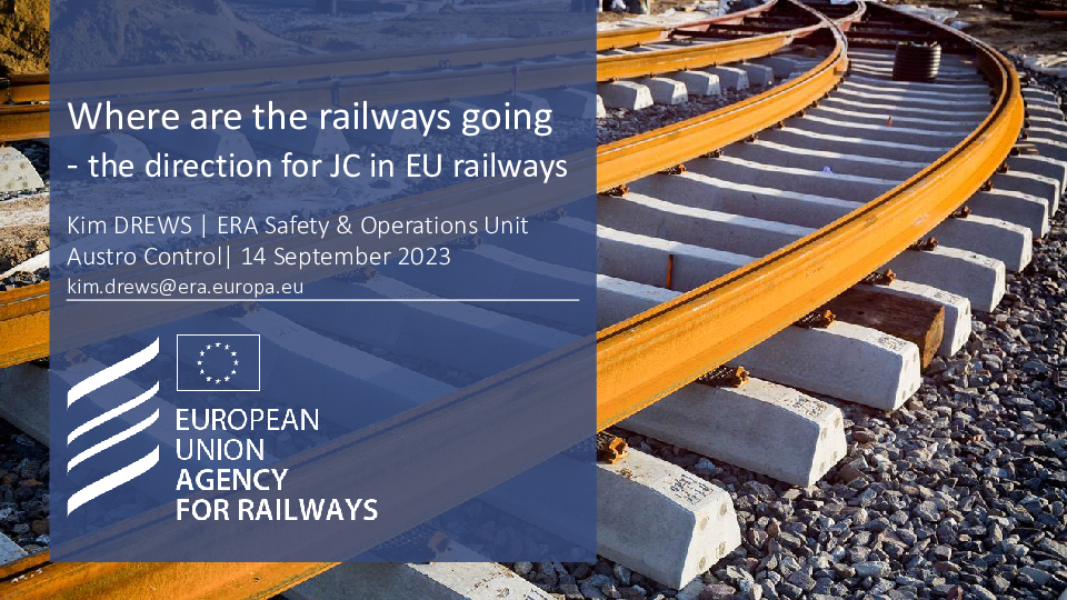 The first part of a presentation titled "Where are the railways going – the direction for JC in EU railways", presented on 14 September 2023 as part of the 2023 Just Culture conference titled "Just Culture & the Judiciary - Exploring Safety for all in a Culture of Justice".