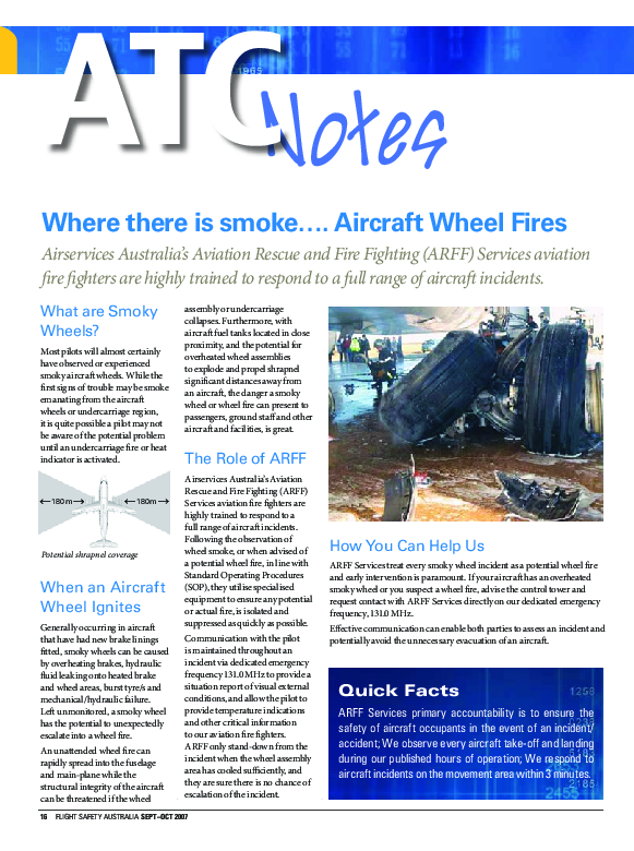 An article about smoking wheels, the Australian ARFF and the direct communication emergency frequency in Australia.