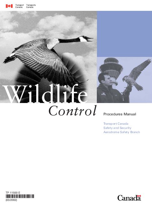 The Wildlife Control Procedures Manual compiles information from a variety of Canadian and American publications to present up-to-date information on the wildlife-hazard management issue.