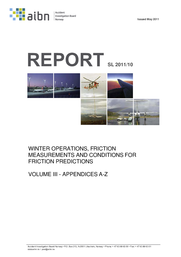 Appendices to a report by Accident Investigation Board Norway which looked at 30 events in which runway surface friction was a factor.