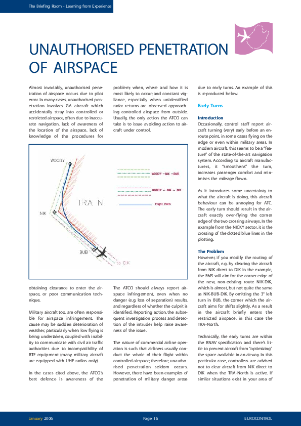 Early turns executed by pilots flying on air routes sometimes lead to airspace infringement
