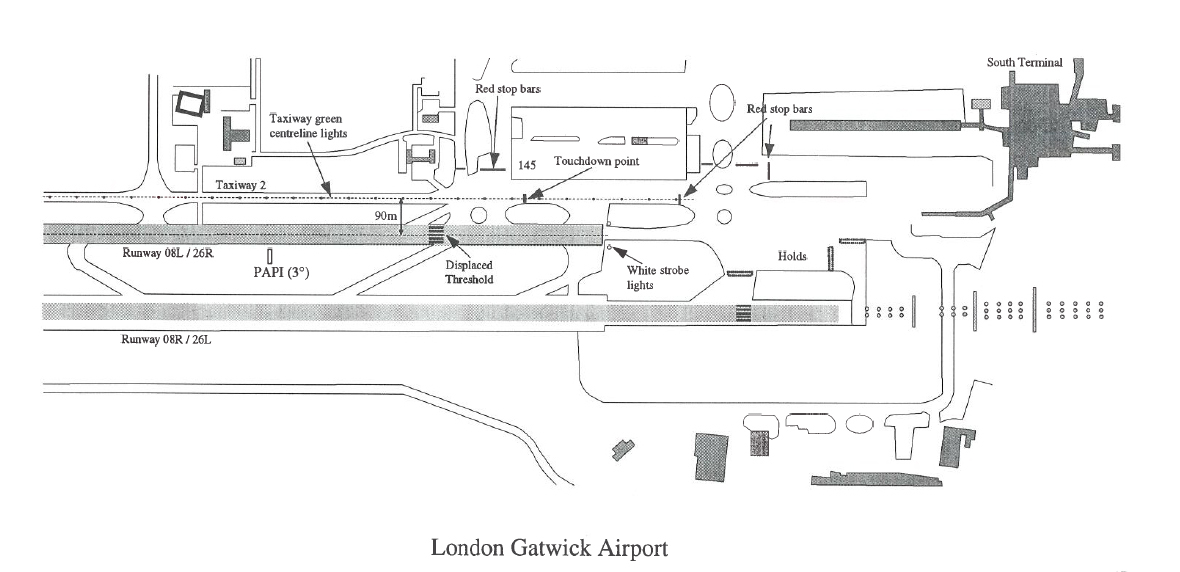 - (The CAA ensure that) the lighting of runways and taxiways at London Gatwick Airport should be re-examined with particular reference to the elimination of any possible confusion for pilots identifying Runway 26R/08L and Taxiway 2A. Recommended modifications include