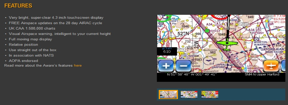After consultation with GA groups, NATS in the UK has partnered with Airbox to produce the AWARE Airspace Warning Device for pilots. Originally for use in the UK AWARE now has a French and German chart available. This, or other commercially available products that are developed to do the same thing, could be endorsed by other ANSPs and Regulators if they were considered to be beneficial in reducing infringement risk.