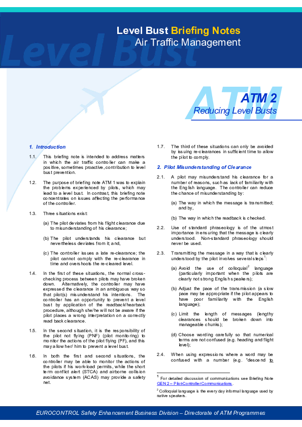 This briefing note is intended to address matters in which the air traffic controller can make a positive, sometimes proactive, contribution to level bust prevention.